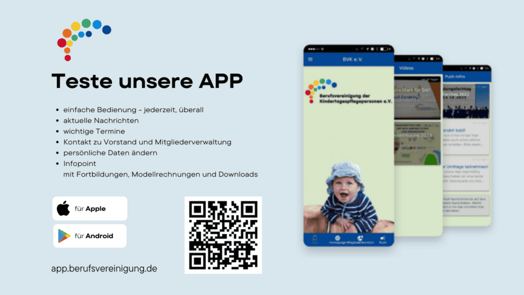 Hole Dir Informationen von der Berufsvereinigung der Kindertagespflegepersonen e.V..